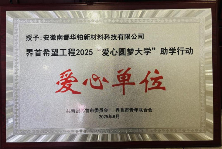 华铂新材料荣获圆梦助学行动“爱心单位”荣誉称号